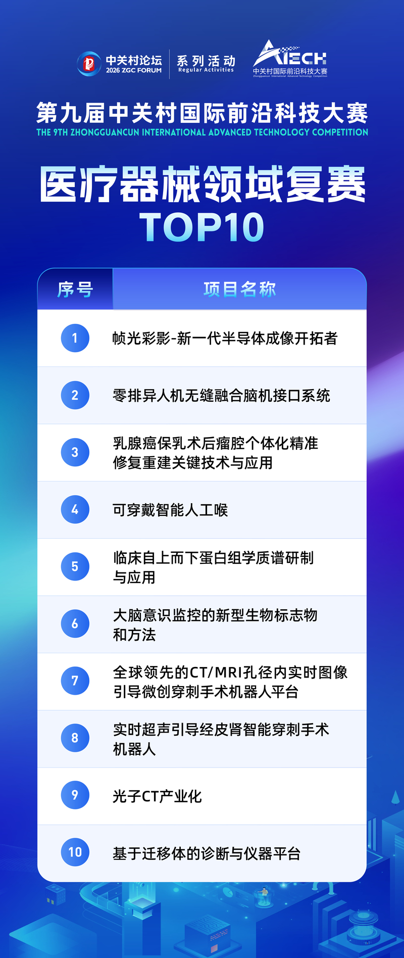 第九屆中關(guān)村國際前沿科技大賽醫(yī)療器械領(lǐng)域TOP10名單揭曉